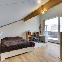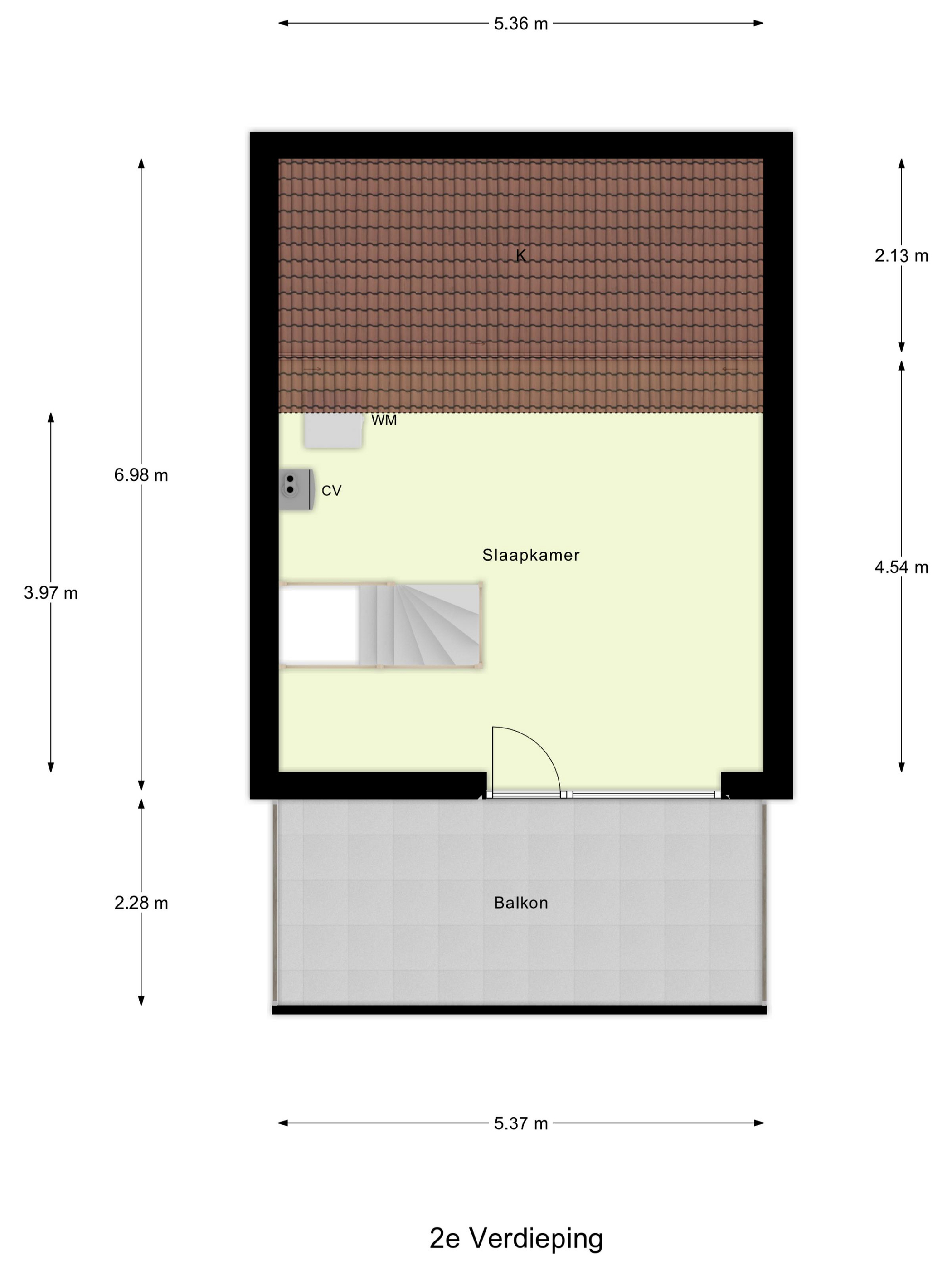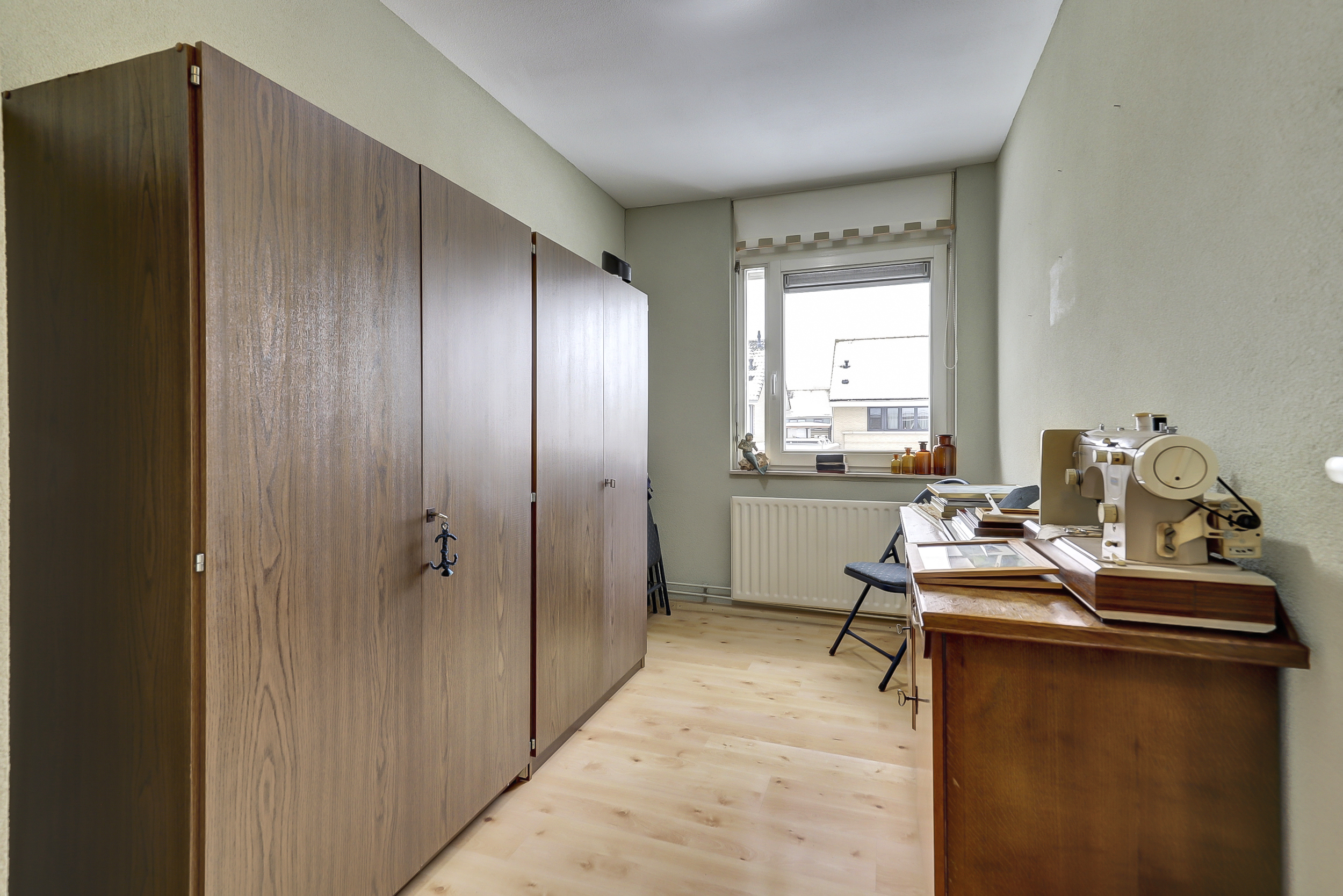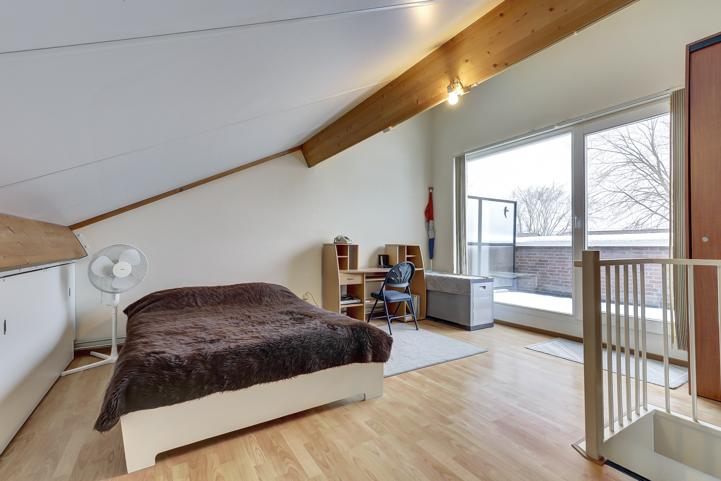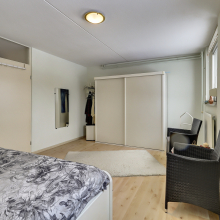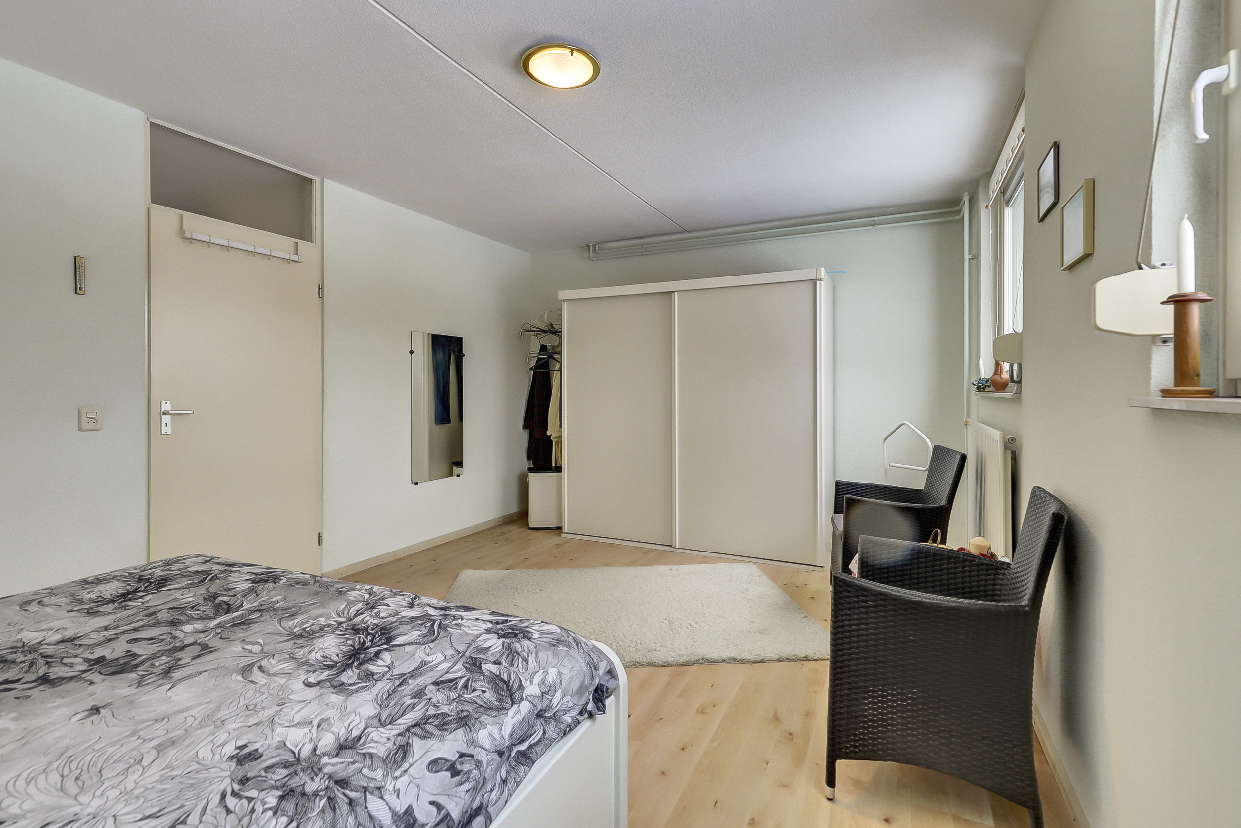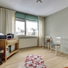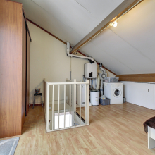 Via een vaste trap bereik je de tweede verdieping. Hier bevindt zich de vierde, ruime slaapkamer. Hier zijn tevens de Cv-ketel (Atag circa 2013) en de witgoedaansluitingen aanwezig. Dankzij het balkon en de grote ramen is er veel lichtinval. Het balkon ligt aan de voorzijde van de woning en biedt een mooi uitzicht over het groen en aan het water in de straat, ideaal om even uit te blazen met koffie, thee of een “ik kijk gewoon even naar buiten”-moment.
