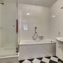 De overloop biedt toegang tot drie ruime slaapkamers en de badkamer. De badkamer is ingericht met een douche, ligbad, een toilet en een wastafel met meubel. Alles wat je nodig hebt om fris (of in elk geval wakker) aan je dag te beginnen.