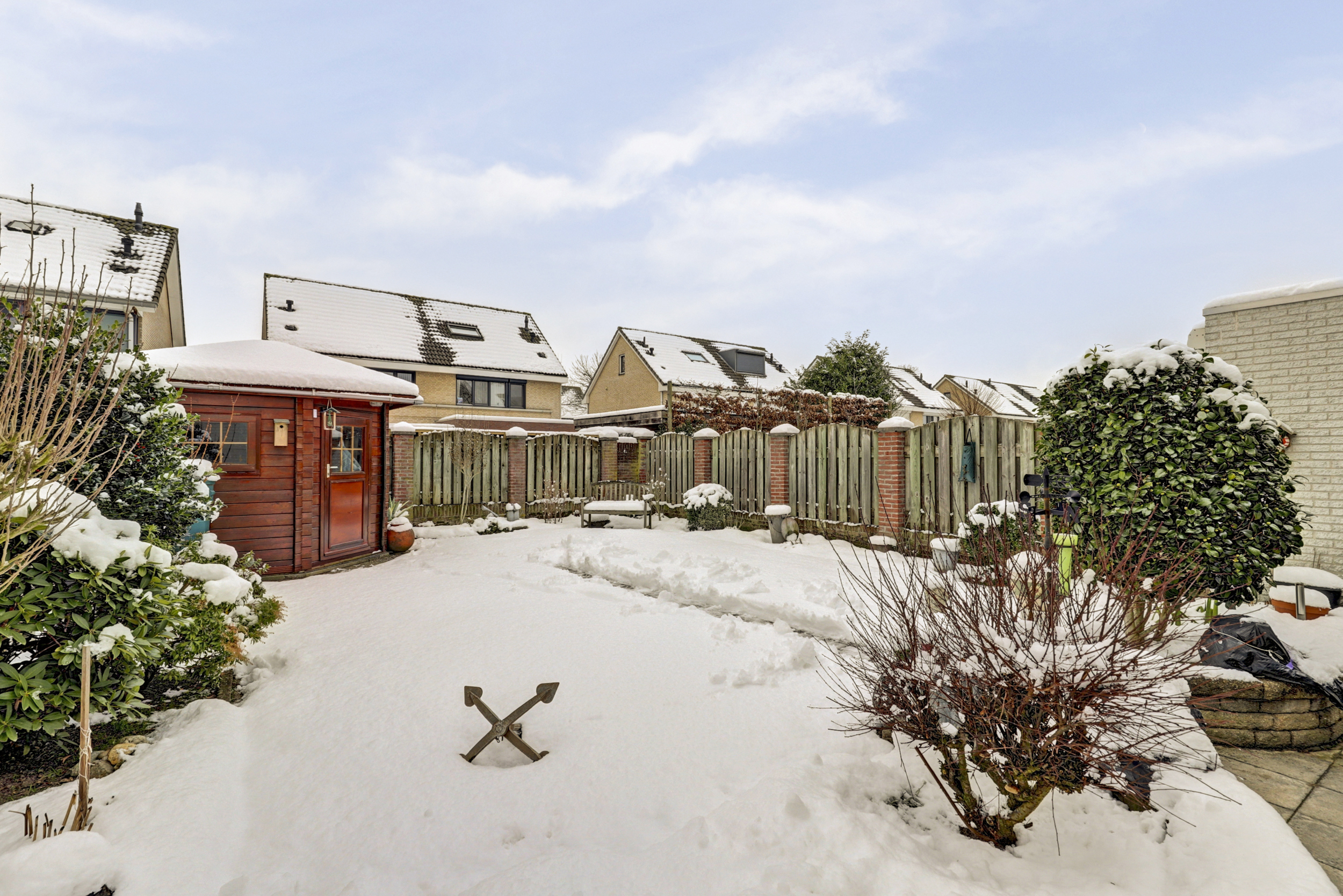 De achtertuin is gelegen op het zuiden en biedt volop ruimte. In de tuin bevindt zich een ruime berging voor extra opslag.