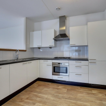 De keuken, geplaatst in 2010, is ontworpen in een praktische L-vorm en uitgerust met luxe voorzieningen zoals een granieten werkblad, een 4-pits keramische kookplaat, koelkast, vaatwasser en een combi oven. De ruime en lichte woonkamer biedt een panoramisch uitzicht. Daarnaast is er een handige inpandige berging met Cv-ketel en aansluiting voor het witgoed.