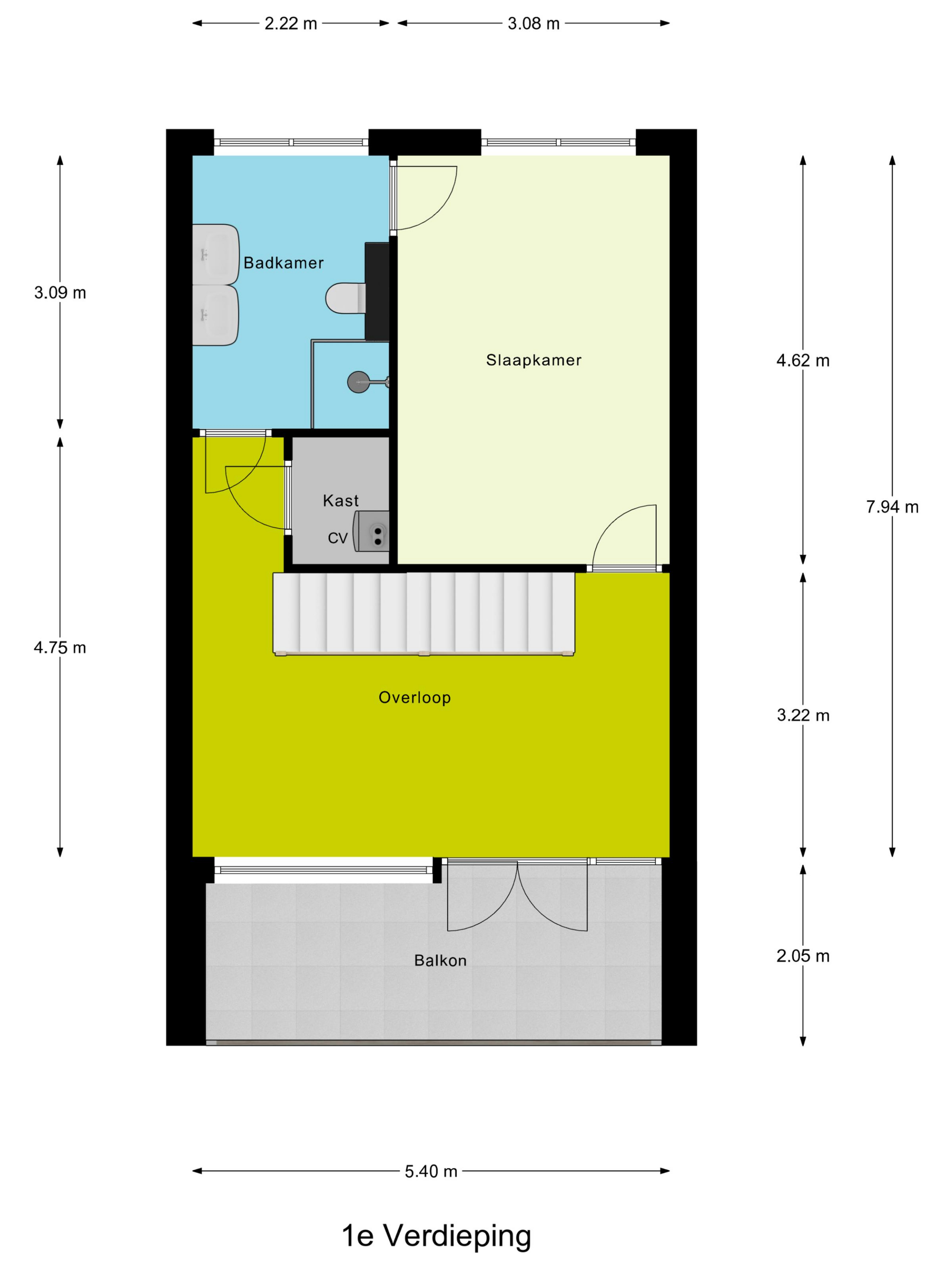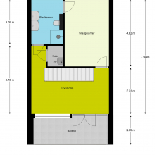 Op de eerste verdieping word je verwelkomd door een ruime overloop die leidt naar een zonnig balkon. De overloop is ook te gebruiken als thuiswerkplek of bijvoorbeeld een ruimte waar je kinderen kunnen gamen. Hier vind je ook een grote slaapkamer, een moderne badkamer met dubbele wastafel, douche en toilet, én een handige berging met wasmachine-aansluiting.