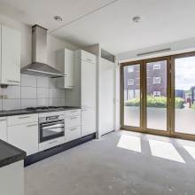 Deze woning is verdeeld over drie comfortabele woonlagen en biedt maar liefst 130 m² aan leefruimte. De begane grond is verrassend ruim opgezet, met aan de voorzijde een stijlvolle halfopen keuken, voorzien van dubbele openslaande deuren – ideaal voor wie van koken én gezelligheid houdt. Aan de achterzijde vind je de lichte en royale woonkamer met een brede glazen schuifpui die direct toegang geeft tot de tuin.
