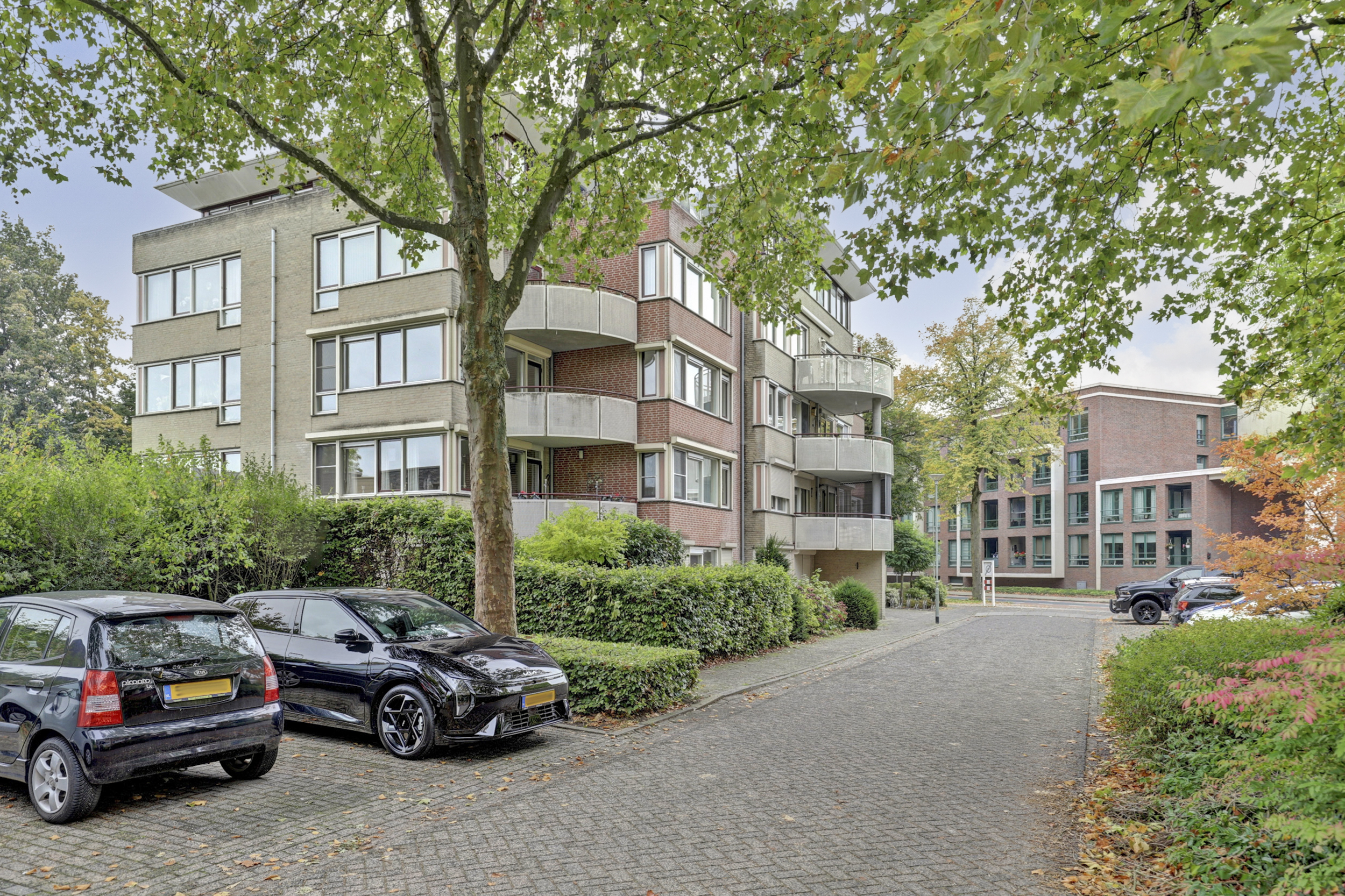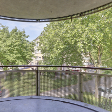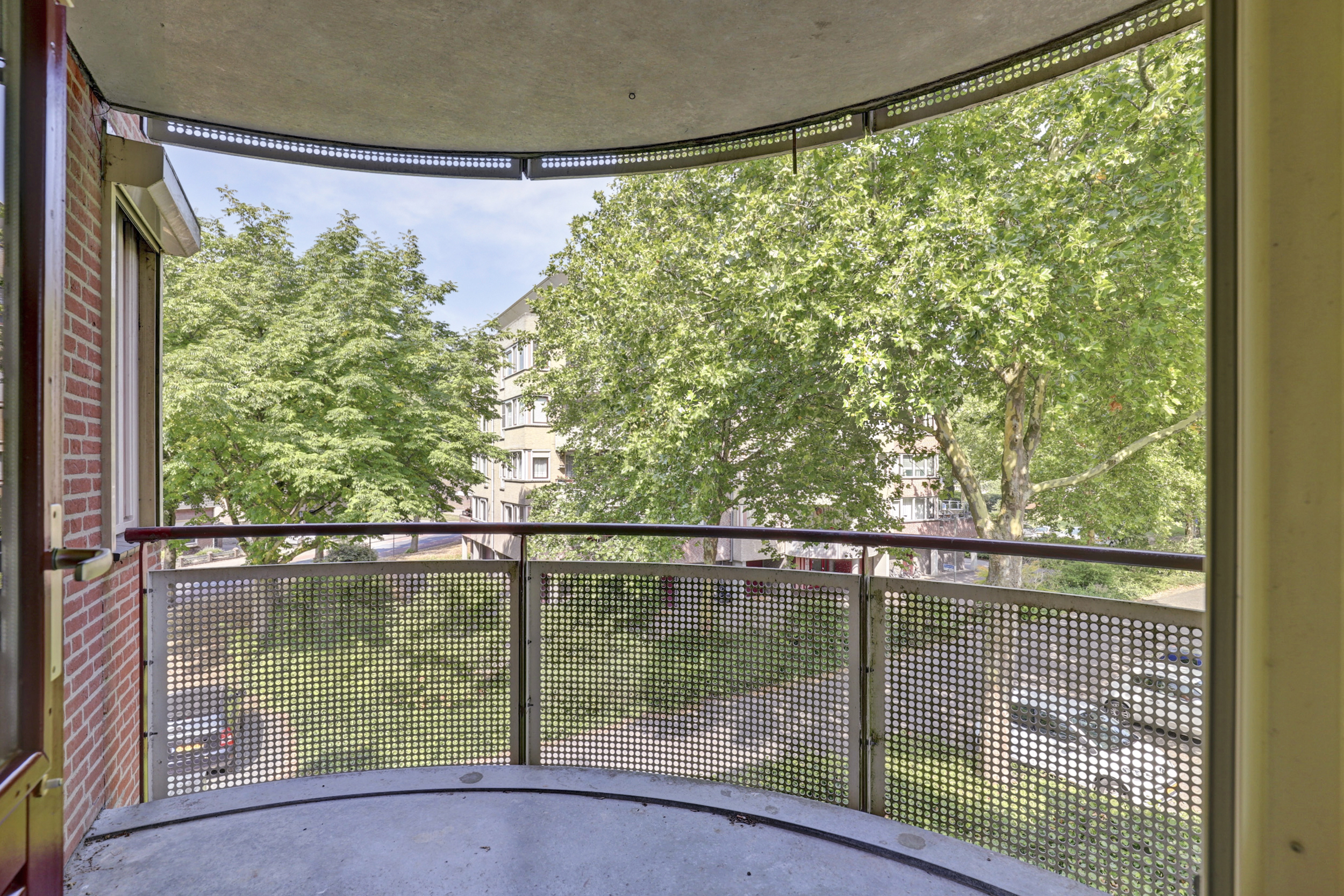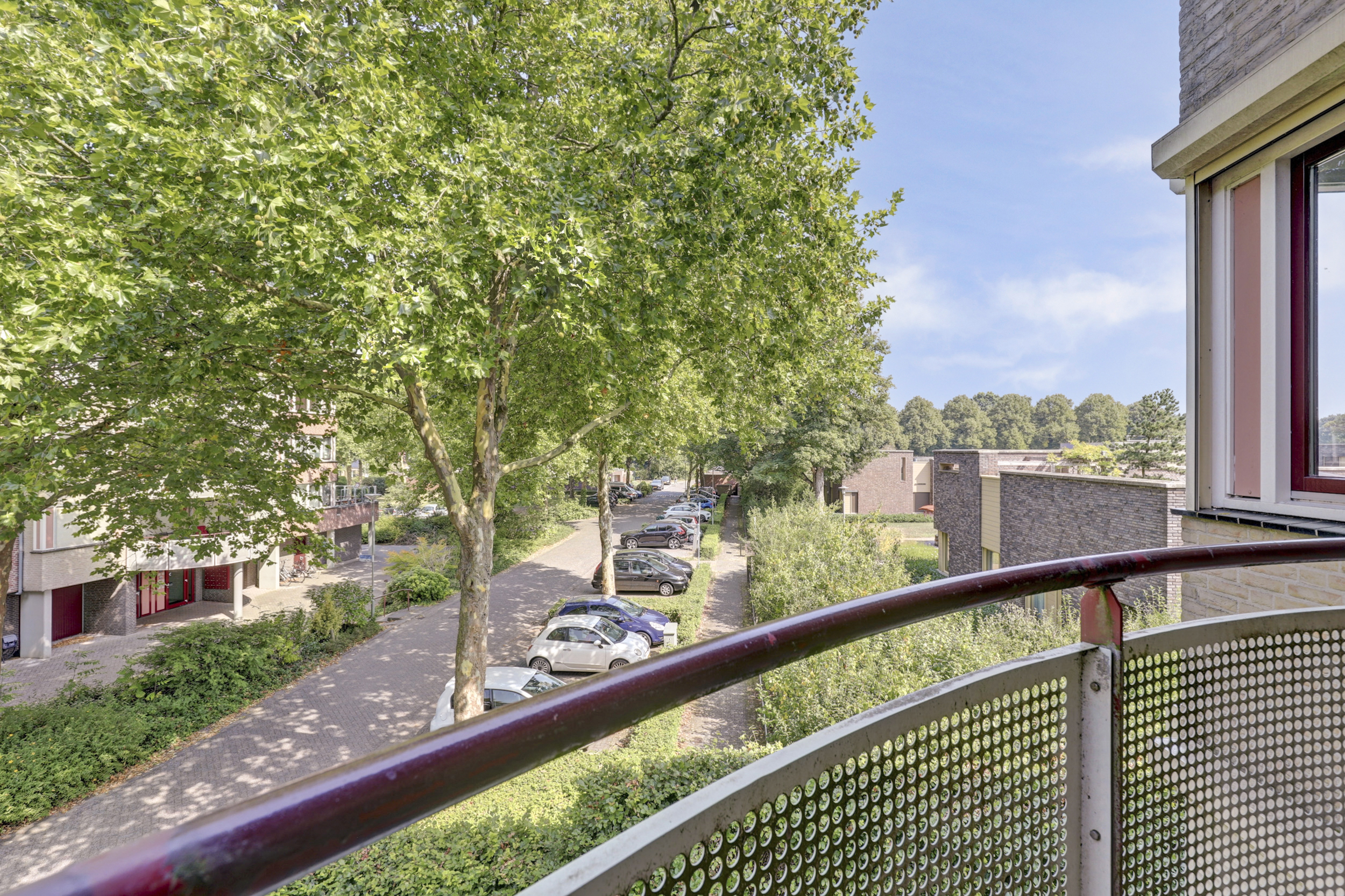 Het ruime balkon heeft fraai zicht op de groene omgeving. Hier is het heerlijk vertoeven en heb je een mooi uitzicht.