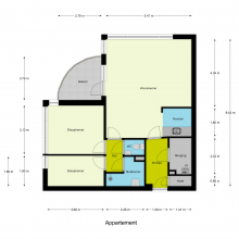 Bij binnenkomst valt direct de royale woonkamer op. De grote ramen zorgen voor veel lichtinval en creëren een ruimtelijk gevoel. De aangrenzende slaapkamers biedt voldoende plaats voor een tweepersoonsbed en kastruimte. De badkamer is voorzien van een inloopdouche en wastafel.
